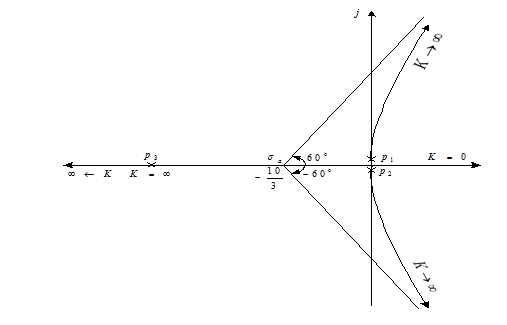五、 无开环零点,3个开环极点,根轨迹的条数为3。