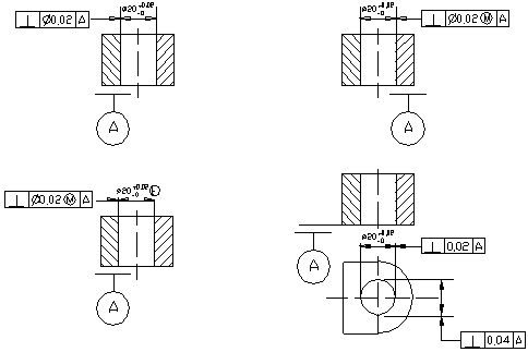 5. 比较下图中的四种垂直度公差标注方法区别。