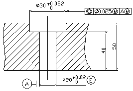 14. 如下图所示, (1)采用什么公差原则? (2)被测要素的同轴度公差是在什么状态下给定的? (3)当被测要素尺寸为φ30.021mm,基准要素尺寸为φ20.013mm时,同轴度允许的最大公差可达多少?(基准要素未注直线度公差值为0.03mm)